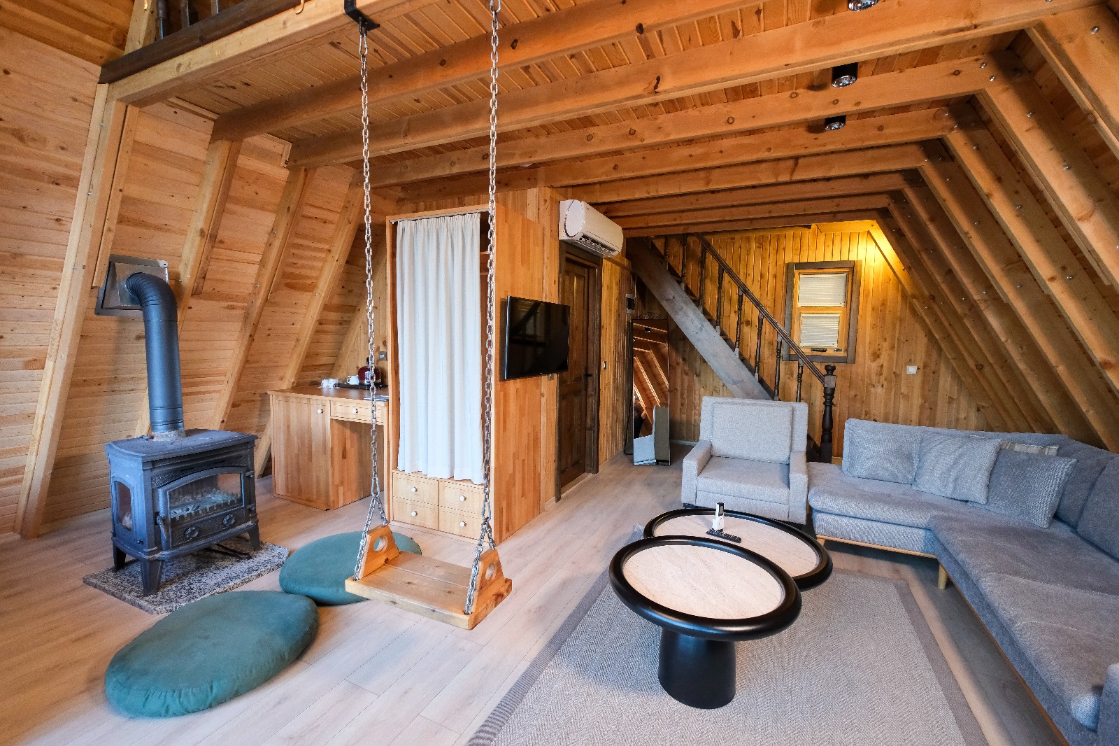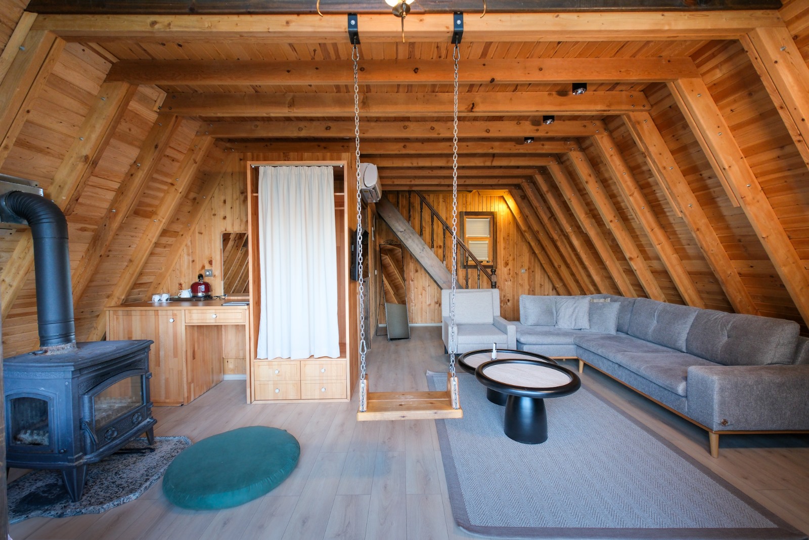 Özel olarak sedir ağacından inşa edilmiş üçgen ahşap bungalovlarımız, sıcak bir atmosferde doğayla iç içe bir konaklama sunar.